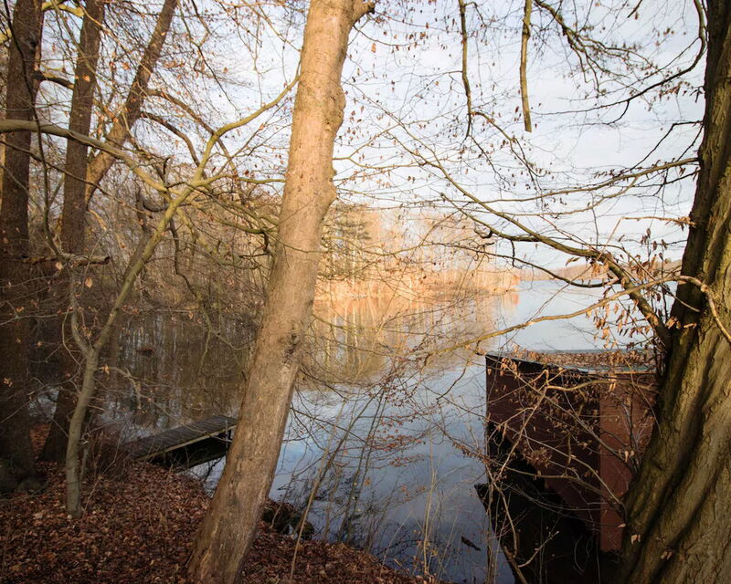 Eigener Steg mit Badeplattform und Ruderbooten am Haussee